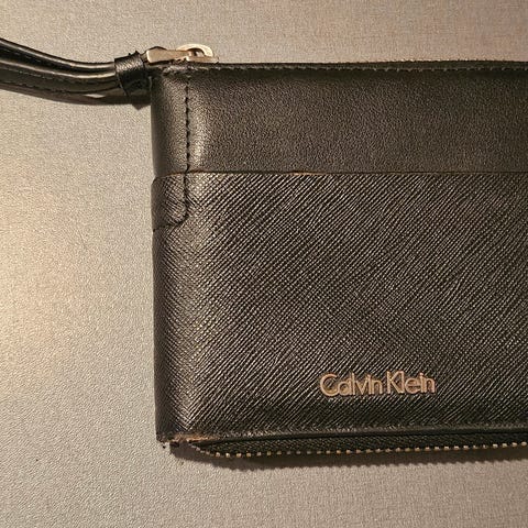 Fin pung fra Calvin Klein i læder med lynlås. Rigtig mange gode rum bl. a. til opbevaring af kort og rum med lynlås til mønter mm.