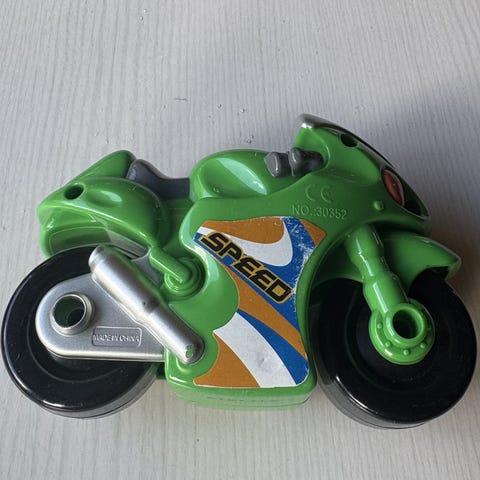Motorcykel til børn i rød. Fremstillet i plastik med farverne blå, rød og gul. Børn elsker at frese rundt på dem. Og de er ganske ufarlige.