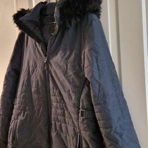 Hætten kan knappes af. Pelskanten kan også knappes af.