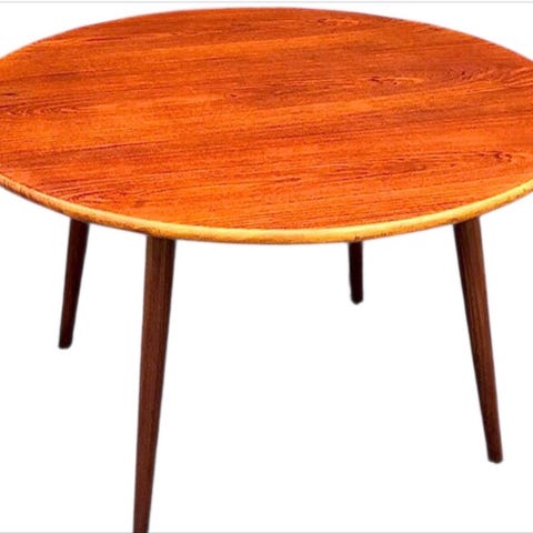 Rundt teaktræ sofa/sidebord med trekantet hylde af Holger Georg Jensen
