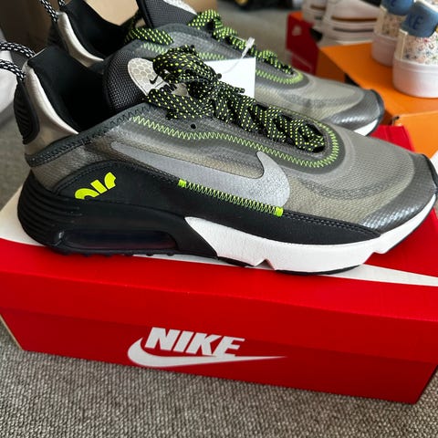 Nike Sneakers i størrelse 45 med blå og sorte farver. Skoene har en kombination af materialer og et design, der inkluderer detaljer i blå og sort. Egnet til dagligt brug og sport.