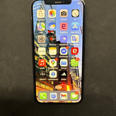 Sælger min iPhone 12 i sort med 64 GB lagerplads. Telefonen fungerer helt perfekt og er velholdt. Den har kun små ridser, som kan ses på billederne, men de er af mindre betydning. Telefonen har minimale brugsspor, er altid blevet opbevaret i cover og med panserglas.