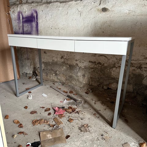 Velfungerende skrivebord, mangler en skuffe i højre side