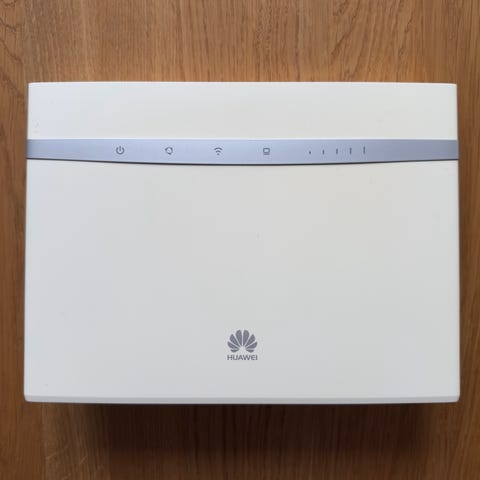 Huawei B311s-22 Router med fire Ethernet-porte og WiFi-forbindelse. Enheden har en hvid farve og er designet til netværksbrug.