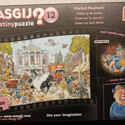 Holiday Fiasco puslespil med 500 brikker. Motiv med mange detaljer og farver. Egnet til voksne og børn, der kan lide udfordrende puslespil.
