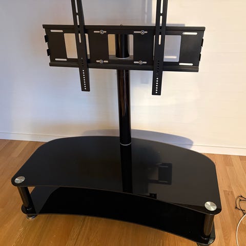 Standeren er brugt med brugsspor bl.a. et par ridser på bagsiden af stangen, som dog skjules af TV ophængets rør, samt et par ridser i bundpladen som næsten ikke er synlige.
