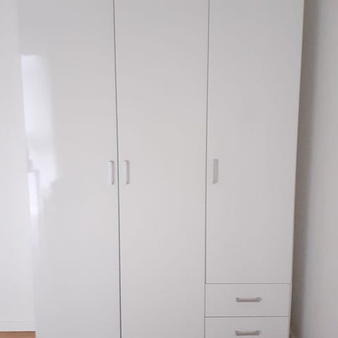 Et rummelig garderobeskab i hvidt, med god stor plads. og meget praktisk.
