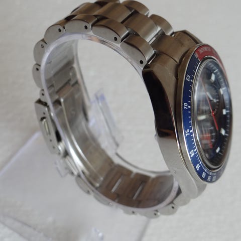 Pæn 8/10 stand. Ridse i bezel ved 30, og derudover mindre brugsspor bl.a. På en af Chronograph knapperne.