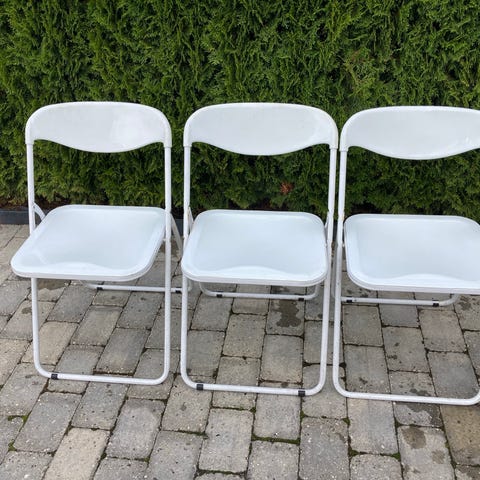 Mange gæster til jul og nytår? Så skynd dig at købe stole. De 8 sorte klapstole er i middel stand. Der er også 3 i bøgetræ og 4 andre sorte, som skal se en hammer og lidt lim. De kan medfølge gratis. Prisen er pr. stk.