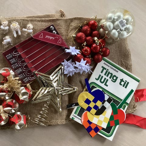 Kugler, Lysholdere, Hjemmeflettede Julehjerter mm.,,,Det hele for 100kr.,,,