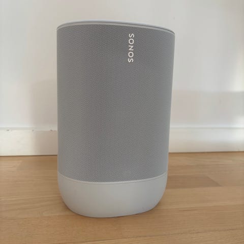 Sonos Move 1 gen. trådløs højttaler i hvid farve. Kompakt design til brug i forskellige rum. Understøtter trådløs tilslutning for nem integration i hjemmets lydsystem.