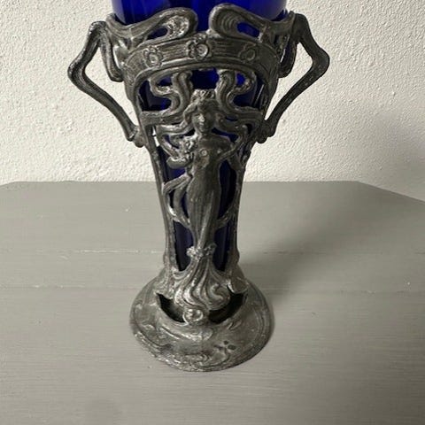 * Smuk antik glasbeholder - i Art Nouveau-stil