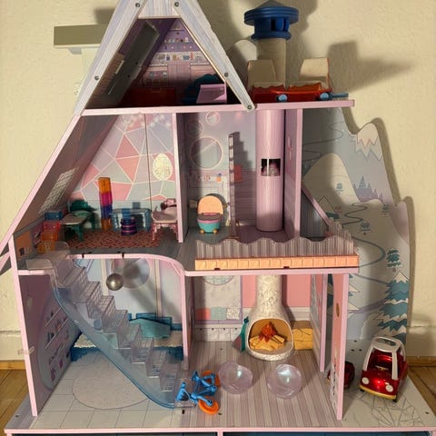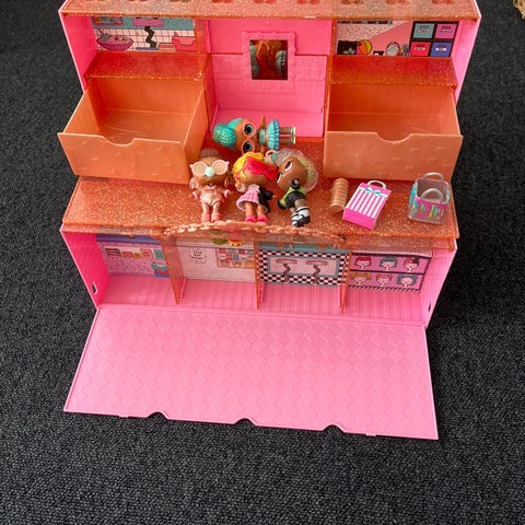Kæmpe lol hus med 2 store og 10 små dukker samt masser af tøj og tilbehør. Inkl bil
