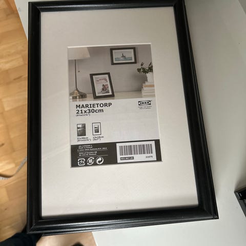 6 stk IKEA Marietorp fotoramme i størrelse 10x15 cm. Rammen er sort. Plexiglas