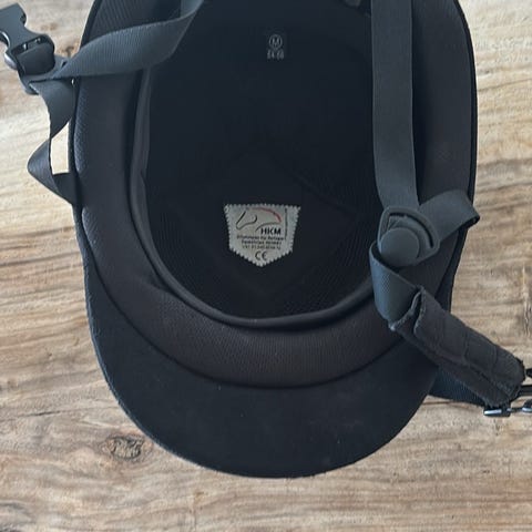 Charles Owen Ridehjelm i størrelse 58. Hjelmen er sort og designet til ridning med fokus på sikkerhed og komfort.