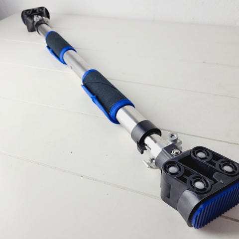 Chin Up og Dip i kraftig kvalitet. Kan justeres i højden og klappes sammen. Sælges for under 1/3 af nypris. Billedet på Amazon viser vist en dværg der trækker sig op.