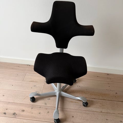 Håg Capisco 8106 kontor stol - den lidt sjældent udbudte lave model, ikke dem der sælges flest af 2nd hand. Siddehøjde ca. 49-70 cm (perfekt til den der er max 172-174cm, mener jeg det er).