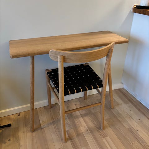 Skagerak/Fritz Hansen 'Georg' skrivebord/konsolbord med skuffe, olieret massiv eg, designet af Chris Liljenberg Halstrøm, fastmonteres på væg, ingen skader, dybde 42 cm, bredde 110 cm, højde 73 cm, nypris (uden skuffe) 6.300 kr.