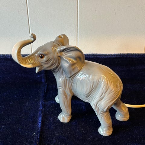 26. Rigtig fin ozon lampe i porcelæn af elg med fatning og pærer sælges for 150,00 kr. Den er 15 cm høj, 14,5 cm bred og 8,5 cm dyb. Fremstår hel og fin med et afslag på det ene gevir, se sidste billede.