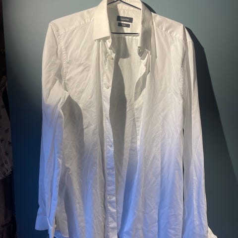 Calvin Klein Slim Fit skjorte i hvid farve, størrelse L, fremstillet i bomuld. Skjorten har en klassisk krave og knaplukning foran