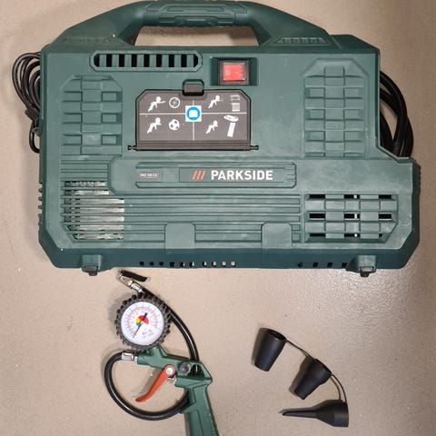 Helt ny kompakt kompressor med forskellige funktioner. Kan kobles til bilen via udtag til cigaret kobling.
