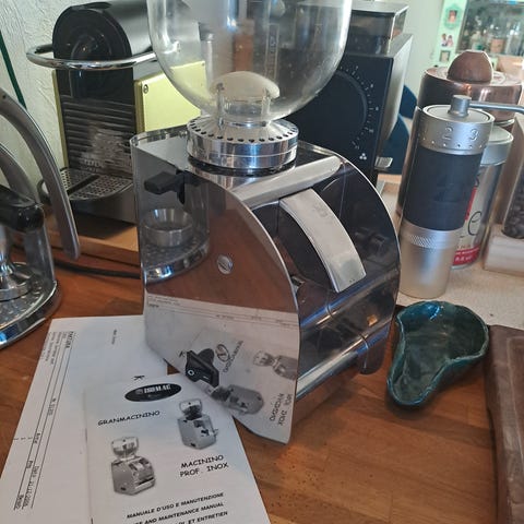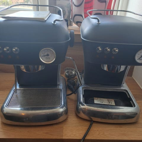 Er patineret, men laver supergod kaffe og fungerer som den skal bortset fra udtaget til kogende vand. Det har aldrig været brugt er er “groet sammen”.