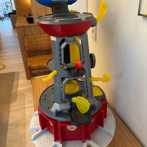 Det oprindelige og største Paw Patrol Lookout Tower der er næsten 1 meter højt. Alt virker, og det har flere niveauer og åbninger, der kan bruges til leg og opbevaring.