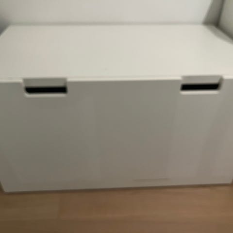 IKEA børnemøbel opbevaringsboks i hvid farve. Boksen har et låg og indvendig opbevaringsplads til organisering af børns ting.