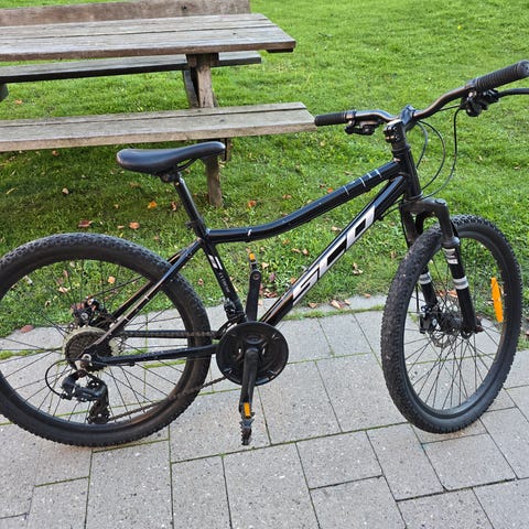 Godt brugt mountainbike, som stadig fungerer, men er ved at trænge til et nyt gearskiftekabel. Sælges pga. opgradering til voksencykel.