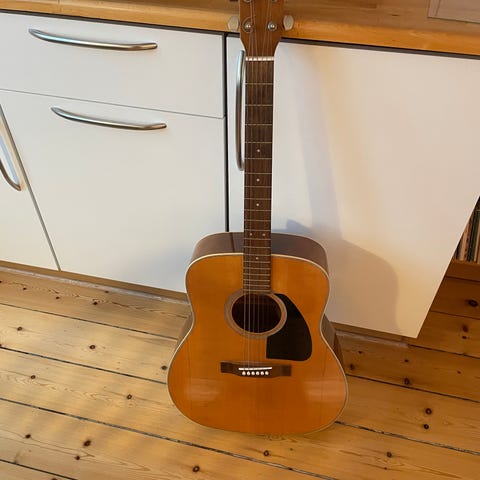 Jeg har indset at jeg ikke får sat den i stand,så hvis der er en derude der har mod på det,så har du chancen. Den er i ok stand dog med brugsspor. Den skal have en ny sadel ved broen. (Har en blank af ben der skal slibes/formes) Der følger også et nyt sæt "Bridge Pins" og et sæt strenge.