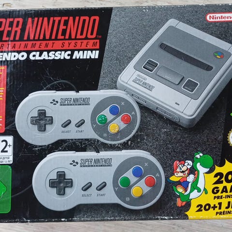 Genoplev spil-klassikere med denne Nintendo Classic Mini. Som ny, inkl. original emballage. To controllere, en original og Aexus controller. Perfekt til hyggelige aftener med de ikoniske spil fra 80’erne og 90’erne.