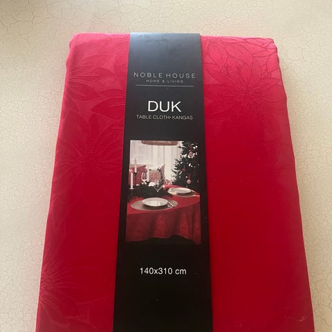 Salling Jacquard Dug med målene 140x220 cm i rød farve. Dugen er fremstillet i jacquardvævet materiale og er strygefri.. 2 stk haves, 75 kr pr stk
