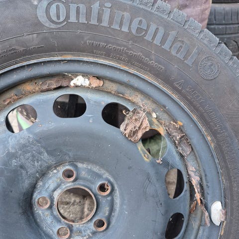 Skoda Roomster wheels and tyres. Continental Winter Contact. Two ok, two probably need replacement. From last car.