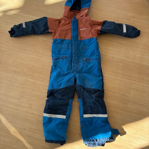 Didriksons børn flyverdragt i størrelse 110, men med uudnyttet extend size, så ærmer og ben kan forlænges. Vind og vandtæt. Farve blå, lavet af polyester. Flyverdragten er unisex og designet til børn.