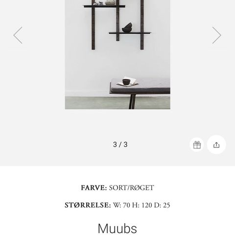 Flot Muubs reol i sort stål med messing ben. Lågen kan skubbes i hver retning. 3 stål hylder 20 cm højde i hver hylde indsats.