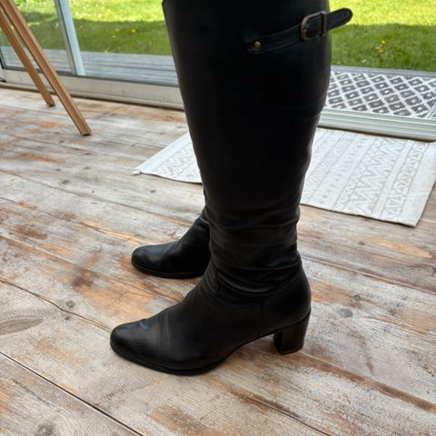 Sælges kun fordi den er lidt for høj i skaftet til mig. Hælhøjde inkl plateau 10 cm.