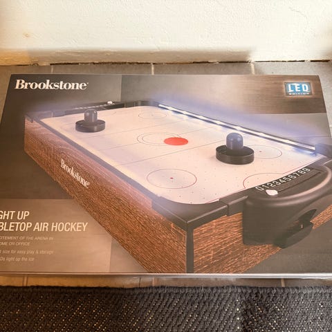 En lille luftmotor under spillefeltet skaber en luftstrøm, der udsendes via mange små huller og får pucken til at glide hurtigt og smidigt hen over spillefladen.