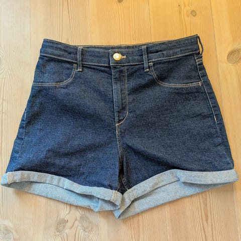 H&M Denim shorts i gråblå farve til piger i størrelse 164. Fremstillet i denim materiale. Shortsene har en let slidt effekt og rå kant forneden.