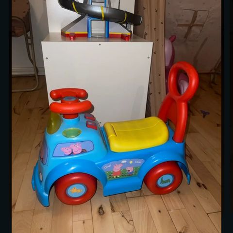 Gurli Gris Peppa Gris radiostyret bil med 2,4 GHz fjernkontroll. Egnet for barn fra 3 år og oppover. Bilen har to figurer fra Peppa Gris-serien og er laget i plast.