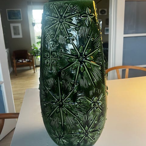 W. Germany 810 40 vase i hvid keramik med en højde på ca. 40 cm. Vasen har en slank form med dekorative bølgemønster. Blomsteropsats, pedestal til kunst eller lamper