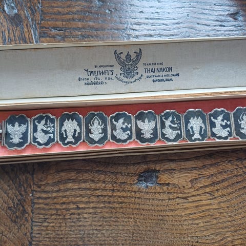Sælger dette smukke armbånd - da det ikke r min stil - og det er synd det bare ligger i smykkeskrinet og ikke bliver brugt. Jeg har arvet det fra min mor - men jeg ved ike hvorfra hun har det - og ej heller hvilket land det og figurerne kommer fra.