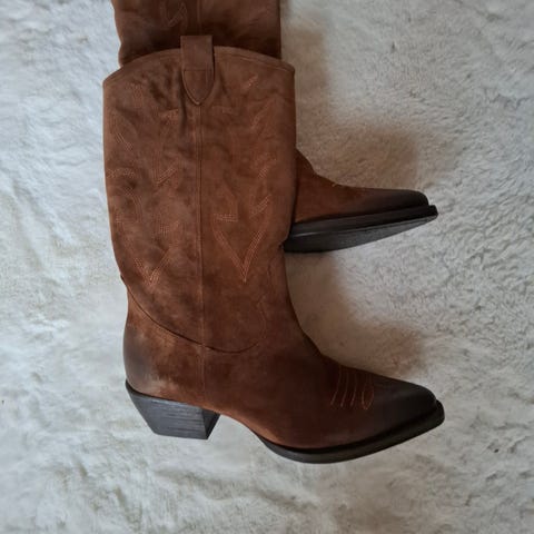 Cowboystøvler farve: Old Iron Cognac/brun. Kun brugt to gange. Læderet er i god kvalitet og kan bruges både til hverdag og fest.