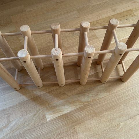 Du kan opbevare og fremvise dine vine i stil med denne vinreol i træ. Massivt fyrretræ: Denne vinreol er lavet af massivt fyrretræ. Massivt fyrretræ er et smukt naturmateriale. Fyrretræ har lige årer, og knasterne giver materialet dets karakteristiske, rustikke look.Rigelig opbevaringsplads: Hver hylde kan rumme 5 flasker vin. Med 6 hylder kan denne flaskeholder rumme 30 flasker vin i alt og opfylde din families behov.Design med bølger: Bølgdesignet kan gøre proppens kork våd, så vinen forbliver frisk.Bred anvendelse: Vinholderen er velegnet til køkkenet, spisekammeret, skabet, spisestuen, kælderen, bordpladen, baren eller vinkælderen mv. Advarsel:Dette produkt skal anvendes med det medfølgende vægmonteringsudstyr for at forhindre, at det vælter. Farve: BrunMateriale: Massivt fyrretræMål: 53 x 25 x 86 cm (L x B x H)Kan rumme op til 30 flasker vinMed 6 hylderMontering påkrævet: JaLegal Documents:Flere detaljer om, hvordan du forhindrer, at dine møbler tipper, kan findes her