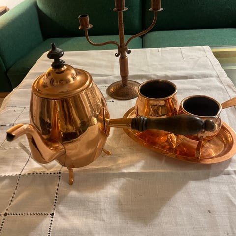 Kobber Tekande med Træhåndtag
