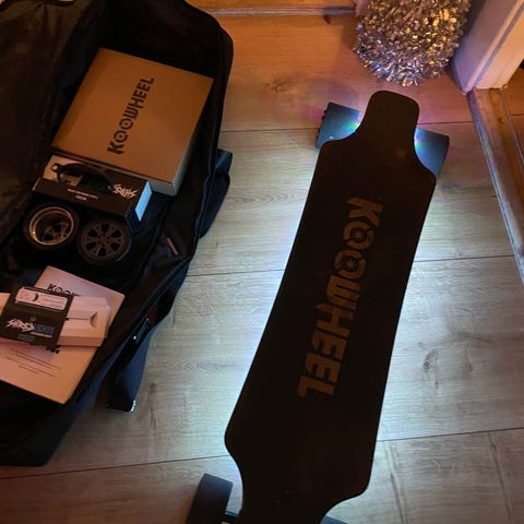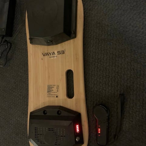 Vaya S2 elektrisk longboard med 52V batteri. Longboardet har et deck lavet af bambus, hvilket giver en kombination af styrke og fleksibilitet. Udstyret med elektrisk motor og hjul, designet til transport og rekreation.mangler Remote