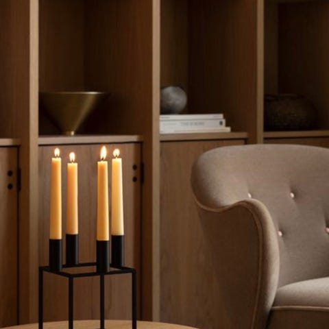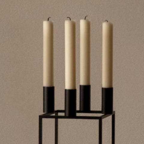 Sort kubus jernlysestage til 4 lys. Fra by Lassen. Er brugt men rigtig fin. Kun lidt stearin i lyseholderne.