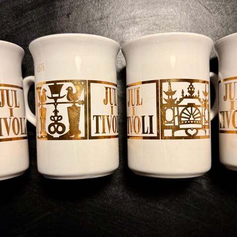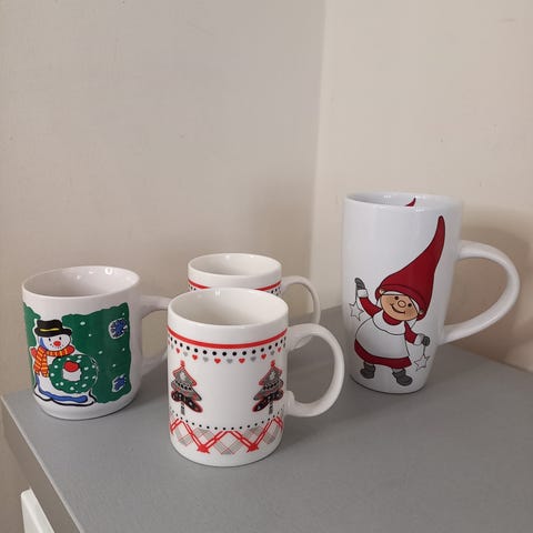 Sæt med “Retro” krus og tallerkener fra BODUM med teksten: “Wish you a Merry Christmas”
