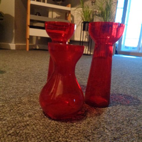3 hyacintglas 2 farvede og klart. 2 er meget gamle. Farven kan snyde lidt. Da der kommer lys igennem. Prisen er pr stk. Alle 3 for 300kr