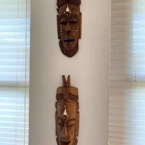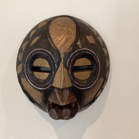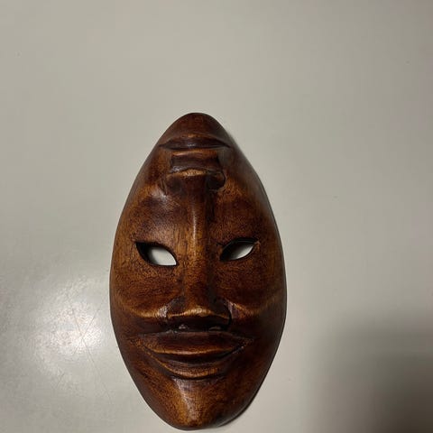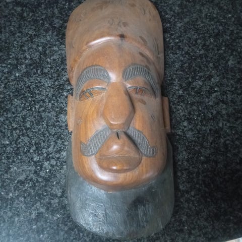 Træmaske med udskæringer