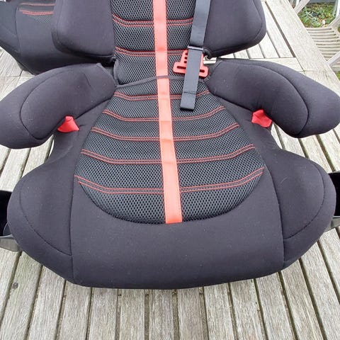 Universal selepude 15-36kg. Brugt med en anelse slitage, men ingen huller. Ikke isofix! Betræk kan afmonteres for vask. Se billeder.